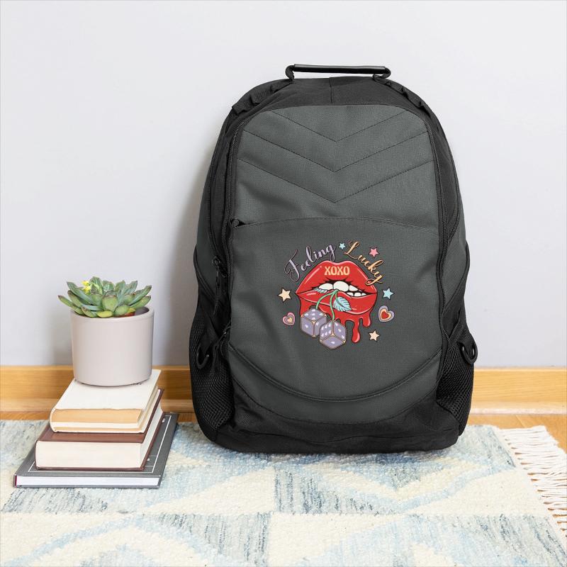 - Front-zippered pocket with organizer panel and headphone port