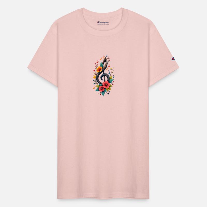 Treble Clef With Colorful Notes And Flowers